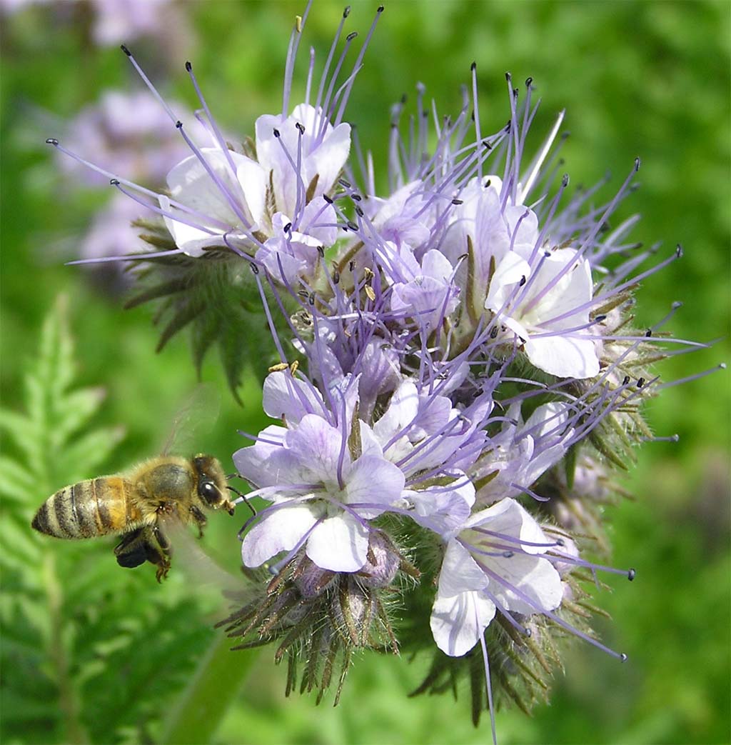 Okrem bohatosti nektáru poskytuje aj množstvo kvalitného peľu tmavomodrej farby. Na kvitnúcom poraste facélie okrem tisícky pracovitých včiel, nájdeme aj veľké množstvá iných druhov hmyzu, či sú to nádherné motýle, neúnavné čmeliaky, včely samotárky a rada ďalších. Je naozaj radosť pozerať sa, na túto prekrásnu scenériu rozkvitnutej facélie a rôznorodého hmyzu.