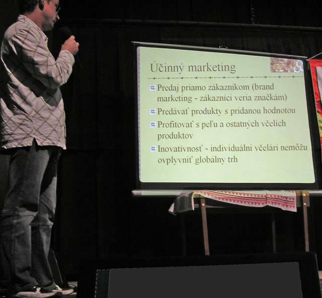 Apimondie sa zúčastnil Ing. robért Chlebo, PhD. a s ním nové informácie zo včelárskeho sveta určite zaujali preplnenú sálu kultúrneho domu. Medzi množstvom informácií zaujal najmä učinný predaj medu, ktorý aj v našich podmienkach má stále množstvo nedostatkov.Aký by mal byť účinný marketing: