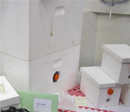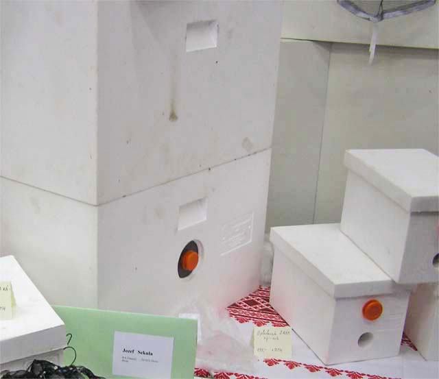 Statické slovenské včelárstvo v poslednom období rozhýbala najmä fy Koppert z Nových Zámkov. Potreba peľu pre výživu čmeľov dalo slovenským včelárom akú takú nádej ako zlepšiť mizériu odbytu včelích produktov. Potrebné peľochyty na odber peľu, boli vystavované aj na tejto výstave. Niekoľko typov som si pozorne poprezeral a odfotil, preto tejto problematike bude venovaný samostatný článok o peľochytoch.