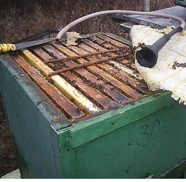 Dobrý pomocník pre včelára je odpočúvajúca hadička (i keď sú i lepšie a modernejšie prístroje na zisťovanie stavu včelstva v zime). Jej odpočuteľnosť som zlepšil o niekoľko decibelov, pridaním na jej koniec gumenný lievik, ktorý zlepšuje rezonanciu zvukov z vnútra zimujúceho včelieho chumáča. keď si koniec hadičky priložíme k uchu a druhý koniec s lievikom 5-10 cm pre letáč, počujeme zreteľne zvukový prejav včiel. Vycvičené včelárovo ucho okamžite spozná podľa odozvy včiel, či je vo včelstve všetko O.K.
